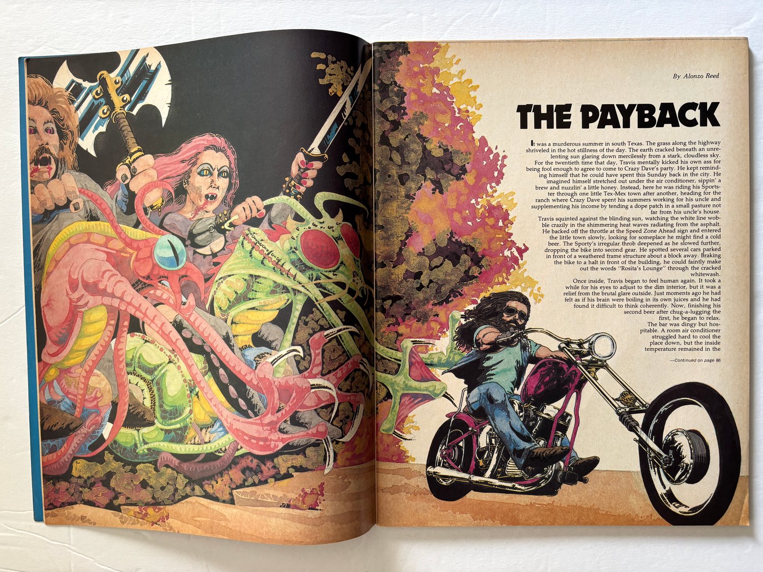 Original Easyriders Issue No. 52, published October 1977 by Paisano Publications. Classic vintage adult biker magazine featuring wild artwork, comics, photos, stories, and true 1970s biker culture. Cover art by Pete Chiodo (“Charlene”).